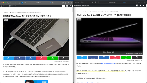 例えば、2016年製のMacBook Pro13インチを利用されている方は M2(若しくはM1)搭載 MacBook Air に買い替えてみてはどうでしょうか。