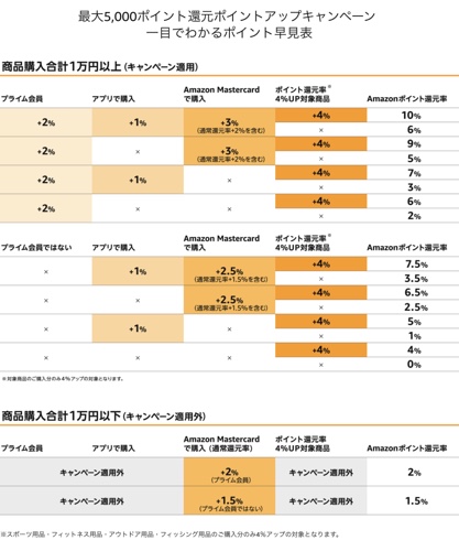 ・Amazon Mastercardでのお買い物なら+1%、最大+3%(通常還元率を含む)