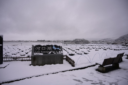 河口湖では雪、その後みぞれ混じりの雪に変わり、精進湖では積雪はありませんでした。同じ河口湖町でも全く違った天気、中々経験できることもないので確認できて良かったです。
