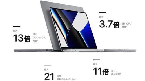 上の表でも解る通り、スペック的には M1Pro MacBook Pro14インチの方が上回っています。