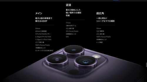Proモデルは、メインカメラ(広角)に新たにクアッドピクセルセンサーの48MPカメラ搭載となりました。