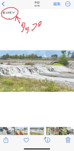 左上の印の箇所をタップすると、『LIVE』と表示されます。