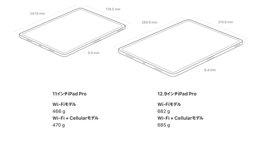 iPad Pro 現行モデルのサイズと重量 引用 : Apple