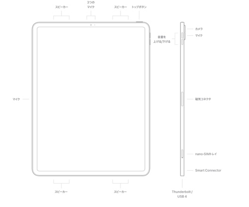 iPad Pro 現行モデルのぼたんとコネクタ 引用 : Apple