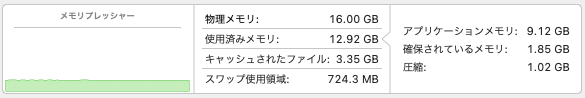 私のMacBook Airはカスタマイズして16GBのユニファイドメモリ仕様となっていますが、Safari若しくはChromeのタブを常に20タブ以上や複数のSafariやChromeのウィンドウを開いたままiMovieなどを起動すると使用済みメモリが増え、SWAP(スワップ)使用領域を使うようになります。