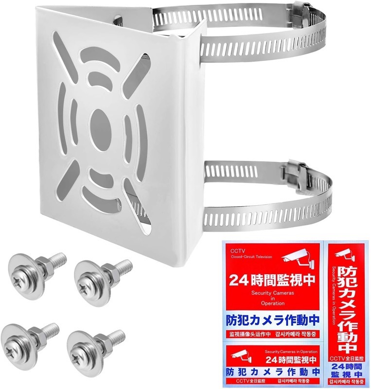 外壁への取り付けもできますが穴を開けると防水上の問題も出ますので、一般的な防犯カメラを取り付ける金属製のブラケットなどを利用することをお勧めします(一部加工が必要です)。