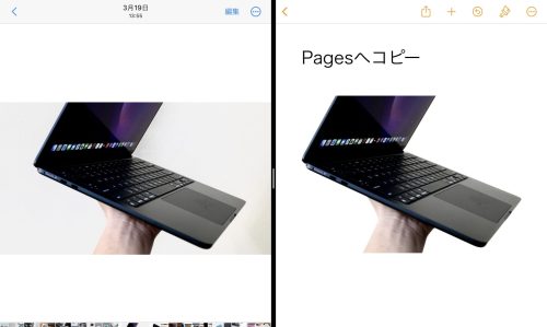 One Actionで、Split View画面右のPagesへ写真の挿入が完了