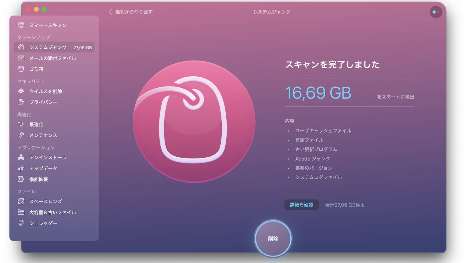 CleanMyMac Xは、システム内のジャンクファイルを自動的に検出し、安全に削除する能力を提供します。