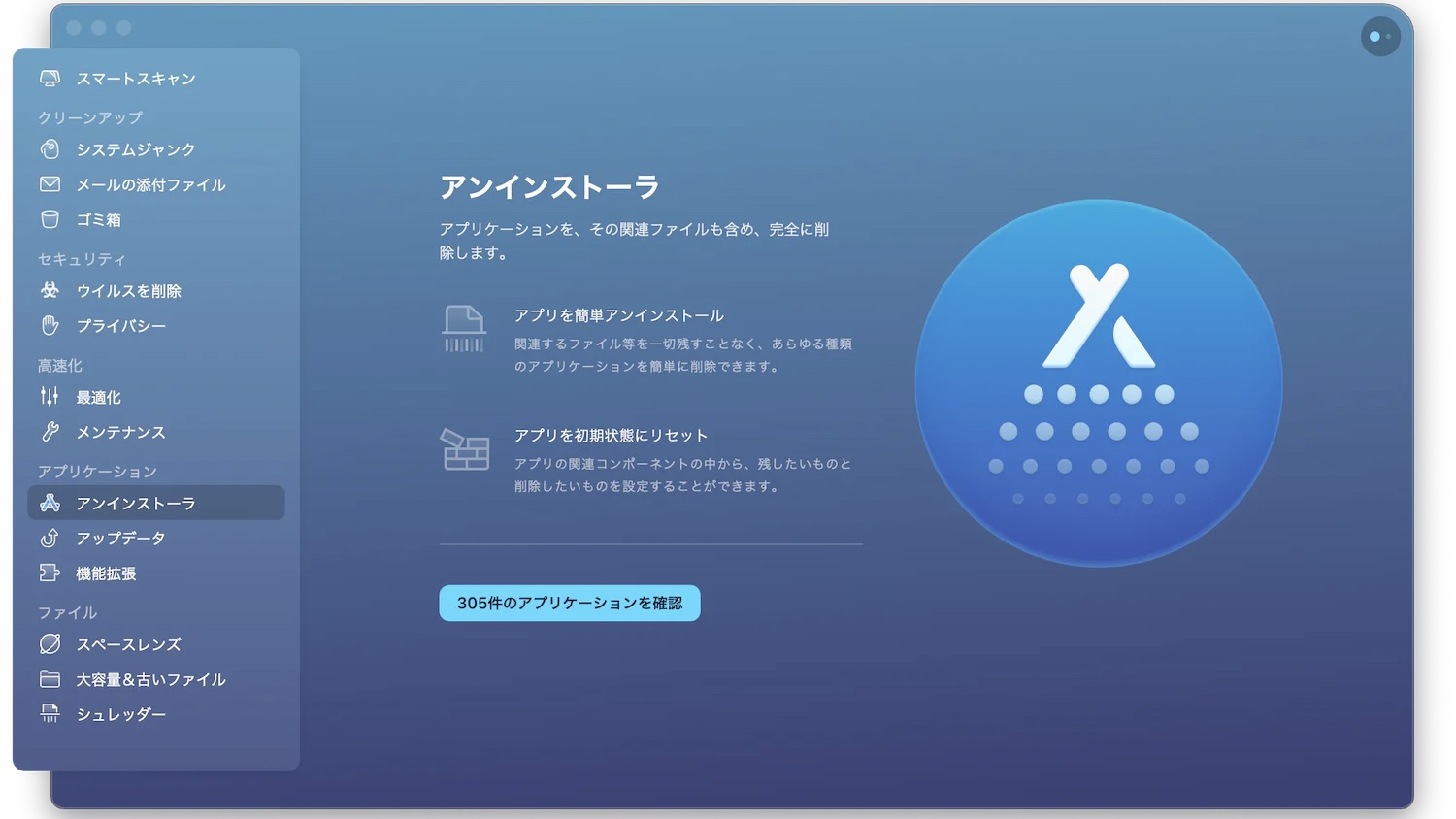 アプリケーションはマルウェアスキャンエンジンを備えており、悪意のあるソフトウェアやウイルスを検出して削除できます。セキュリティを向上させ、Macを保護します。 - アプリケーションのアンインストールの簡素化