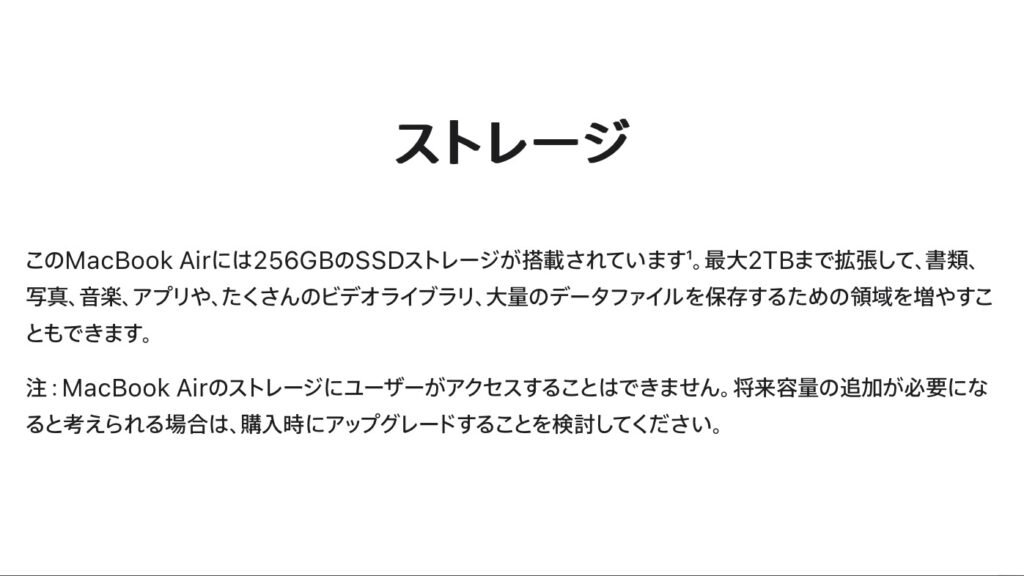 2025年MacBook Air(M4)の発表の際、M3及びM2 MacBook AirはAppleホームページから外れましたが、整備済製品などでMacBook Air(M2)の購入を検討している方も多いです。