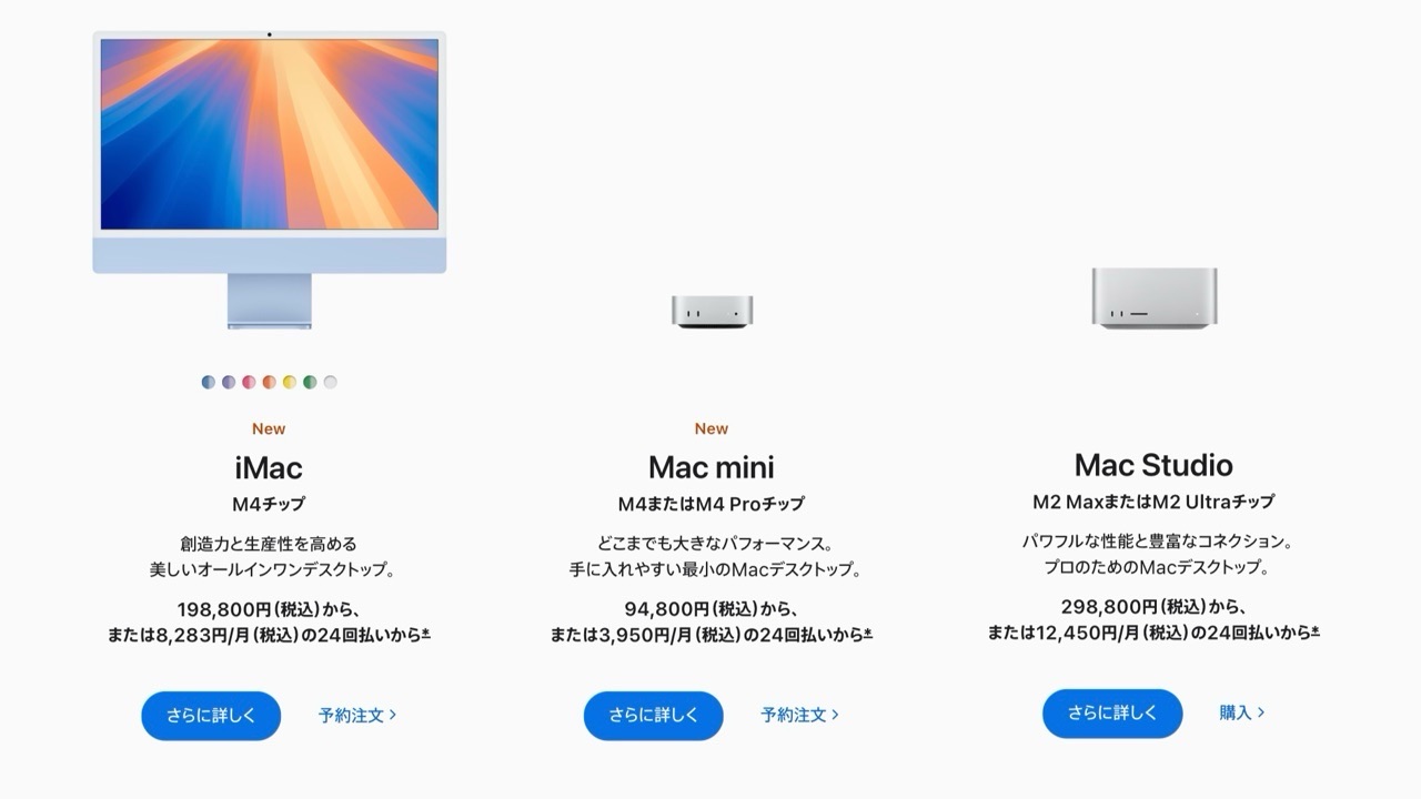 そのMacですが、2024年11月発売のiMacとMac mini、MacBook ProとM4チップ搭載Macの登場が続きました。