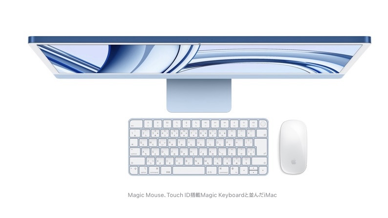 そのiMacですが、筐体はM1 iMacと同じで、搭載チップが新しいM3チップに進化し、Wi-Fi 6EやBluetooth5.3などへの改良と、マイナーアップデートといった内容です。
