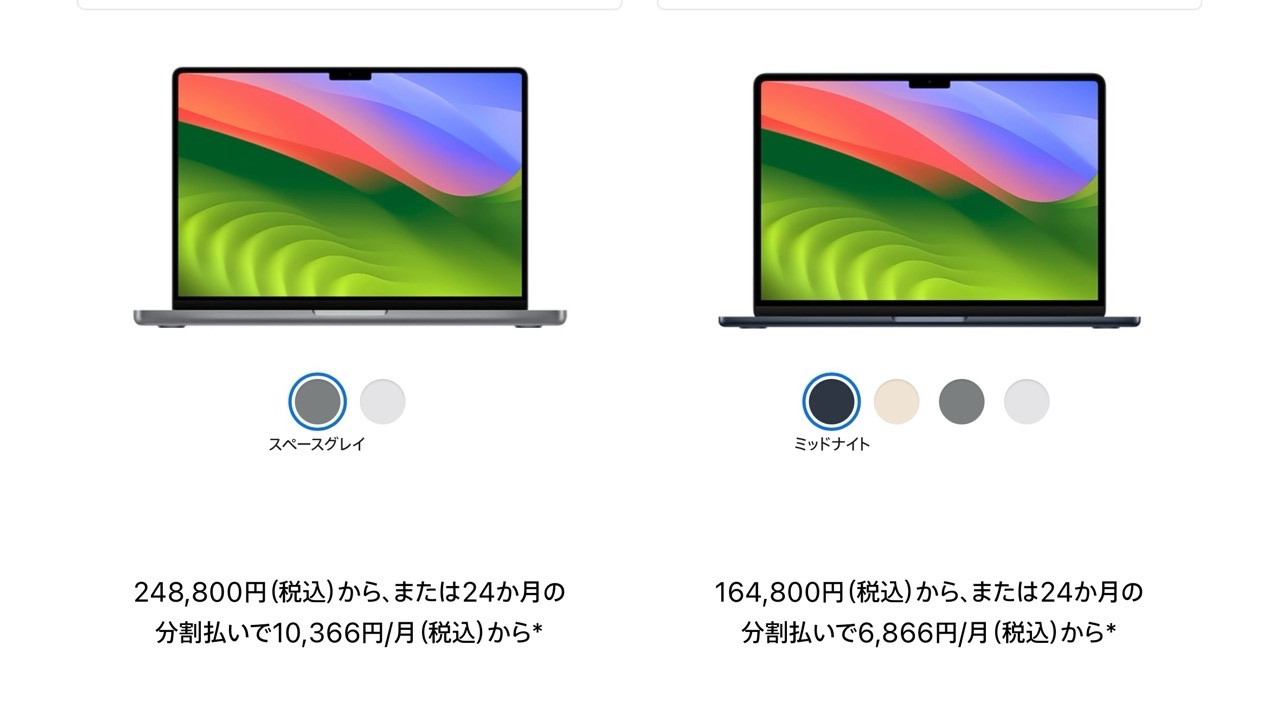 M1やM2チップの際は、はじめにM1もしくはM2チップ搭載のMacBook Airを先に発表・発売し、その後M1 Pro/Max、M2 Pro/M2 Maxが登場したのですが、M3チップ発売の際には先にM3/M3 Pro/M3 Max搭載のMacBook Proが先に発売、M3 MacBook Airは後回しという順番になっています。