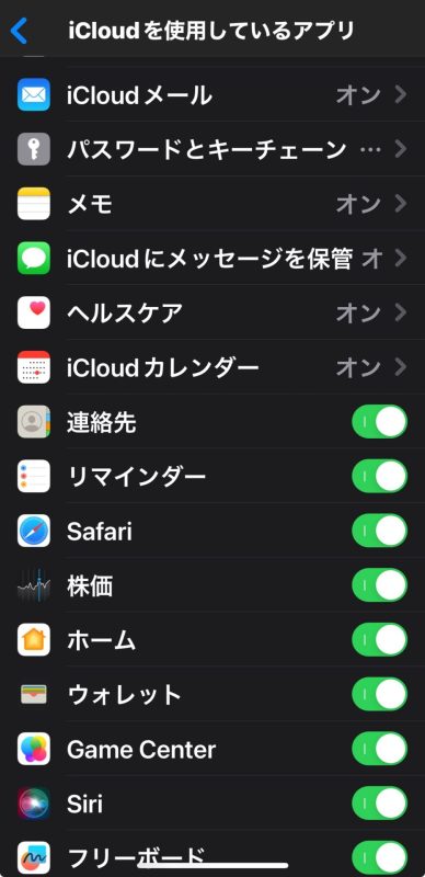 「iCloud」セクション内で、「連絡先」を有効にします。これにより、連絡先がiCloudに自動的にアップロードされ、デバイス間で同期されるようになります。
