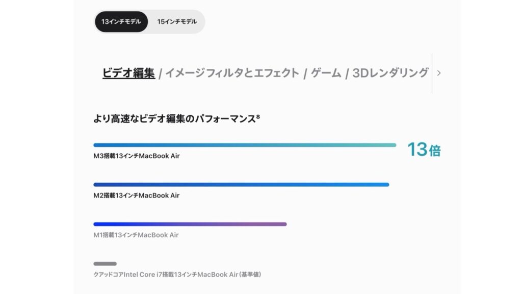 購入や買い替えの目的として、MacBookで「ビデオ編集」を予定している方はその性能の進化を体感できるでしょう。