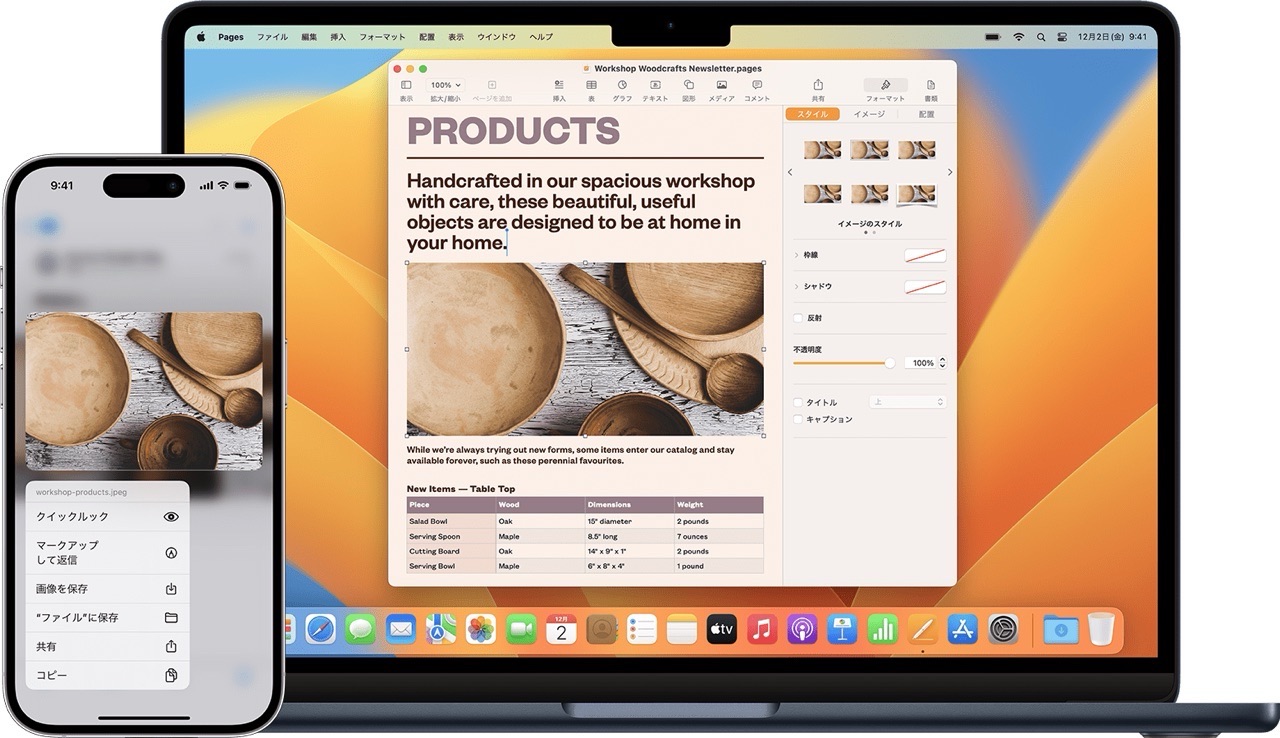 iPhoneでウェブページからテキストをコピーした後、Macでメールを作成している際に、そのテキストをペーストすることができます。例えば、iPhoneで記事の引用部分をコピーして、Mac上のワードプロセッサーに貼り付けてレポートを作成することができます。 - 画像の共有