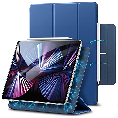 ESR iPad Pro 11 ケース 2021 第3世代 iPad Pro 11 カバー 2020 第2世代 通用 磁気吸着 Apple Pencilのペアリングと充電に対応 オートスリープ ウェイク スリム 軽量 シルク手触り 高級感 三つ折りスタンド マグネティックスマートケース ネイビーブルー