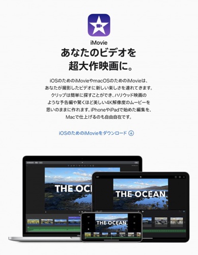「iMovie」はiPhone、iPad、Mac で利用できるApple純正の無料動画編集アプリです。