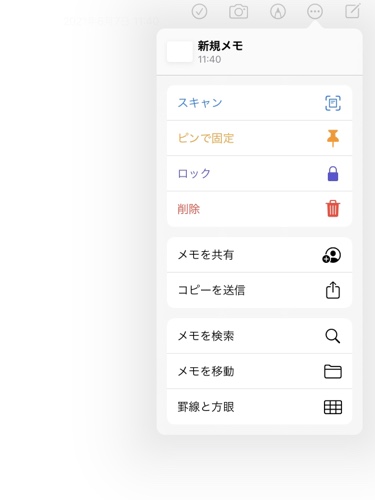 写真の右上の一番右のアイコンをクリックすると新規メモ作成でこの画面になります。