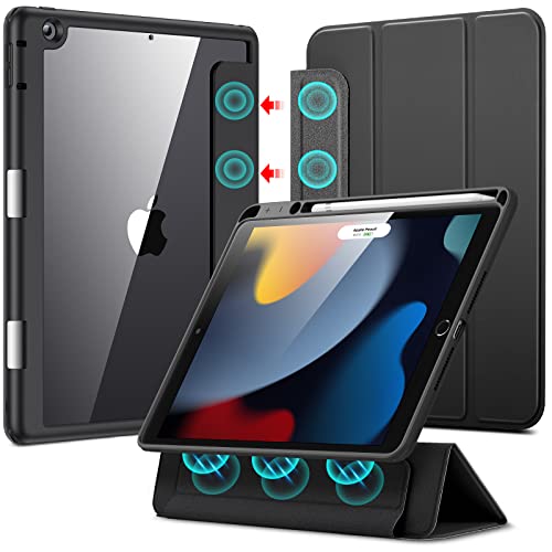 ESR iPad 第9世代 2021 ケース ハイブリッドケース 第8世代 2020対応 第7世代 2019対応 10.2インチ ペンシルホルダー 取り外し可能なマグネットカバー 三つ折りスタンド 半透明・ブラック