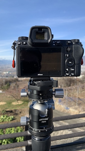 今回購入したARTCISEのカーボン三脚の自由雲台がしっかりしていて気に入っている為、この雲台はそのまま利用したいので雲台のアルカスイス互換プレートへカメラを取り付けるのではなくベルボンのシューベースQRA-5N BASEを取り付け、カメラのZ6にベルボンのシュープレートQB-54を取り付けることとしました。