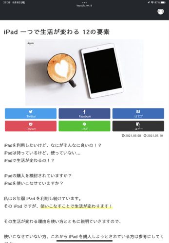 一例ですが、著者のサイトの同一記事を iPhone での表示画面と iPad での表示画面を比較してみてください。