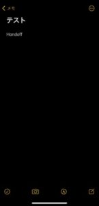 先ほどと逆で、iPad で編集していたメモアプリを途中から iPhone で編集するには次のようにします。