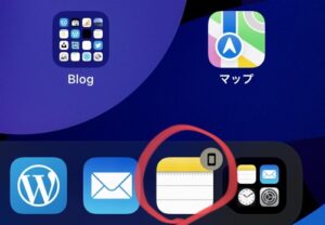 iPad で編集したいときは iPad を開くとDock に メモアプリ がこの様に表示されます。