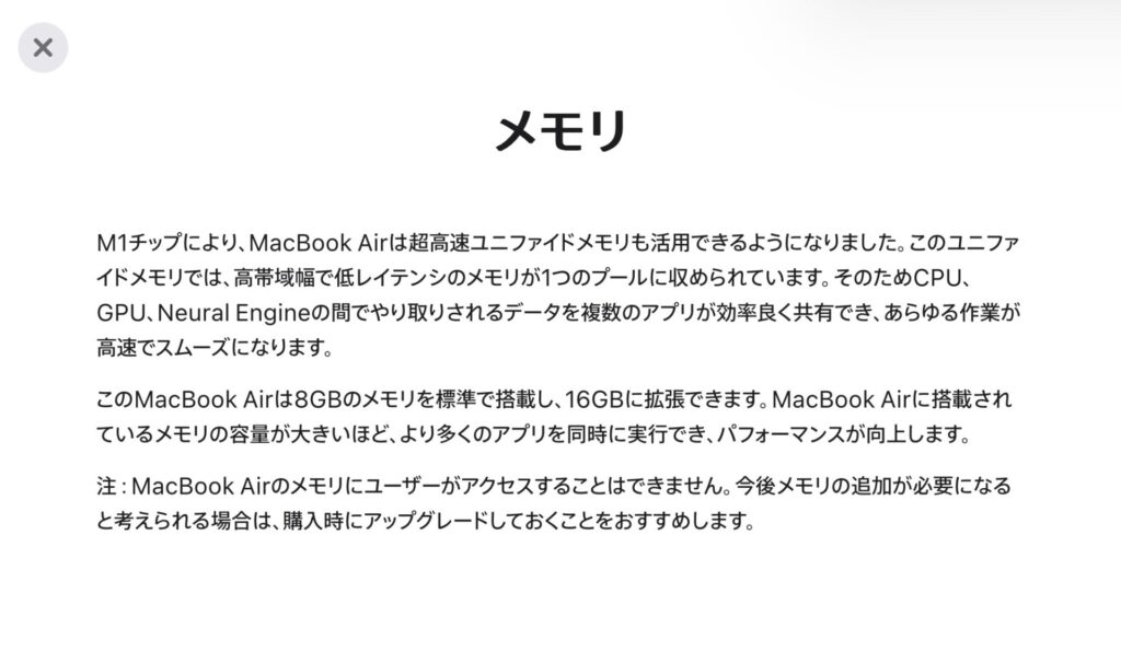 MacBook Airなど、Mシリーズチップを搭載しているMacがメモリ8GBでも大丈夫な理由は、この記事を参考にしてください。👇