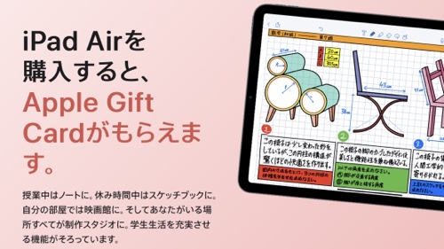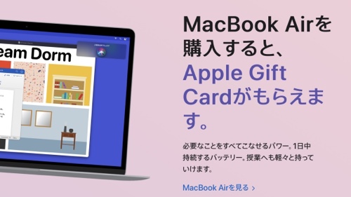 大学生や専門学校生など、また入学許可を得た生徒さんや保護者の方、教職員の方々はAppleのキャンペーンを利用して Mac や iPad などを学生教職員価格で購入できる上、 Gift Card をもらえるキャンペーンが始まりました。