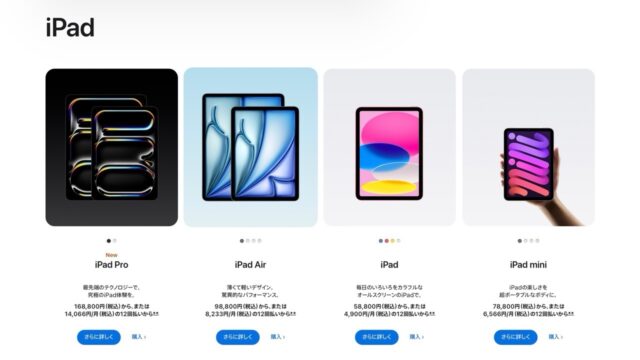 Apple 【2025年12月】iPadの比較とおすすめ機種を解りやすく解説! iPadヘビーユーザーがiPadを比較・解説。iPadやiPad Air、iPad mini等全6種類の中からどのiPadが自分に相応しいか、参考になる様に比較・解説しました。 2024.04.07 AppleiPad